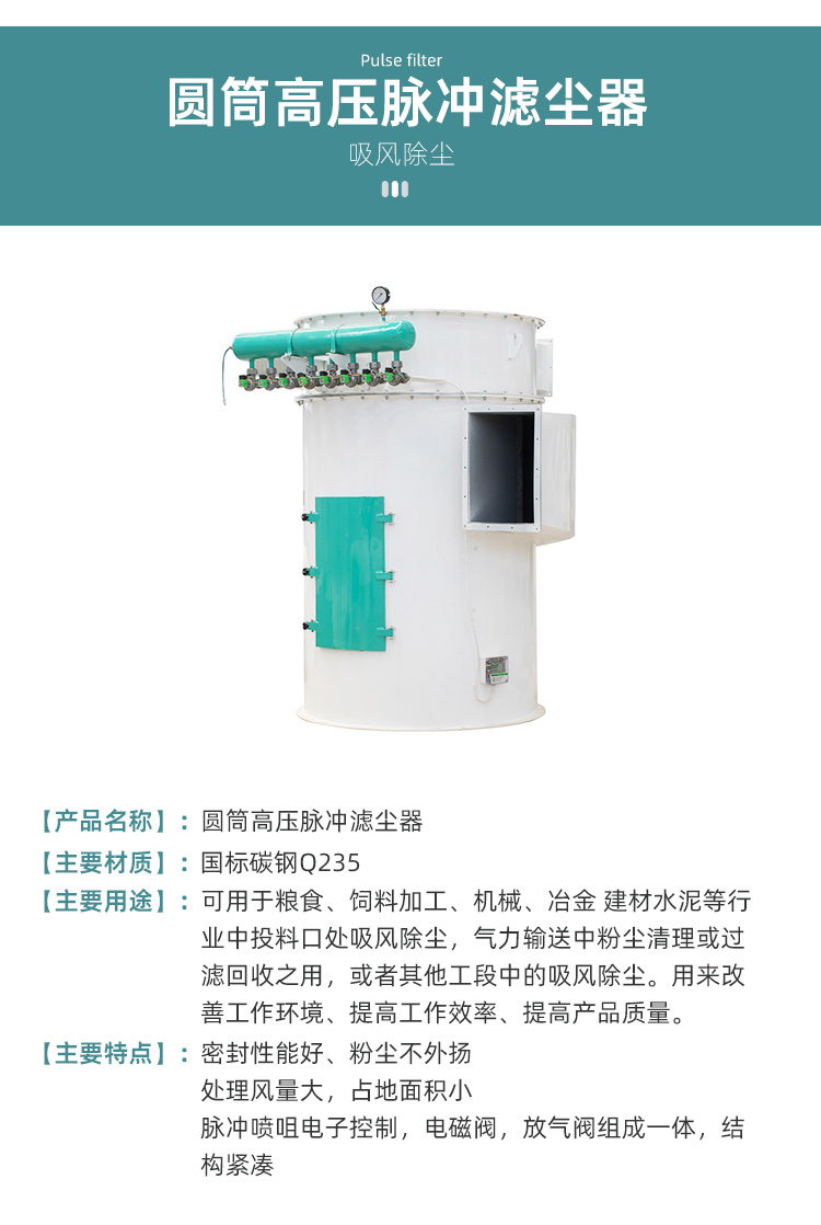 可用于糧食、飼料加工、機械、冶金建材水泥等行業(yè)中投料扣處吸風除塵,氣力輸送中粉塵清理或過濾回收之用,或者其他工段中的奇峰除塵。用來改善工作環(huán)境、提高工作效率、提高產品質量。