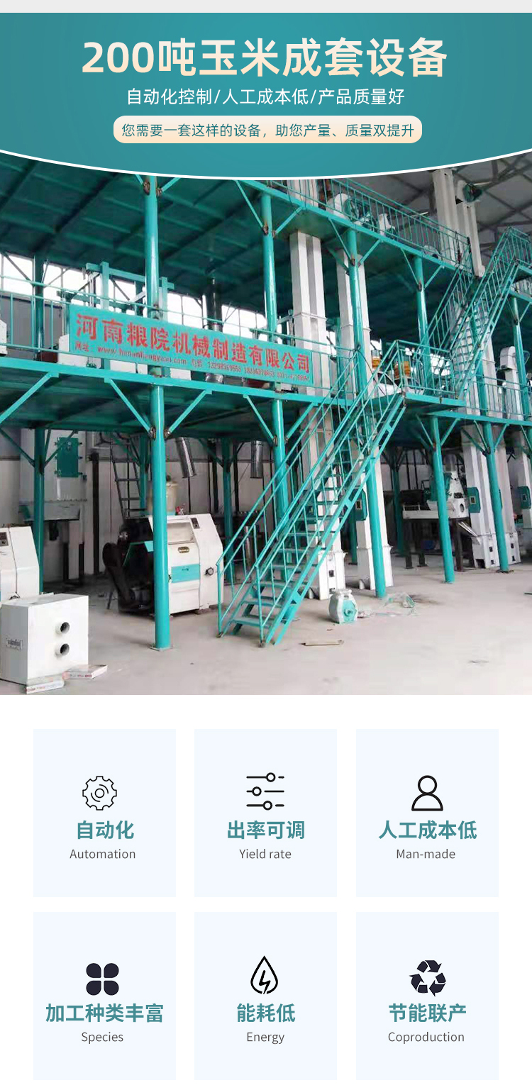 該200噸玉米加工機(jī)械工藝采用(全干法)混合脫皮脫胚工藝,可同時(shí)生產(chǎn)低脂玉米糝、玉米粉、玉米皮。玉米糝、玉米粉作為原料用于食品類、酒精類工廠進(jìn)行加工,也是城鎮(zhèn)居民粗糧細(xì)吃改善生活的好食品,玉米皮可以做飼料。(該玉米加工機(jī)械可以做到玉米皮不需烘干直接打包。)