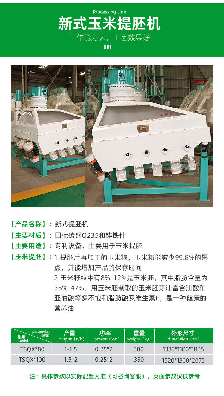 1. 體積小,提胚效果好,動力小,產量高,耗能低。